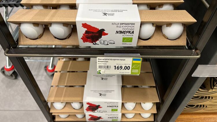 В сети киевских супермаркетов GoodWine покупатели заметили испанские органические яйца по 169 гривен за шесть штук. То есть цена десятка выходит 281 гривна 60 копеек.